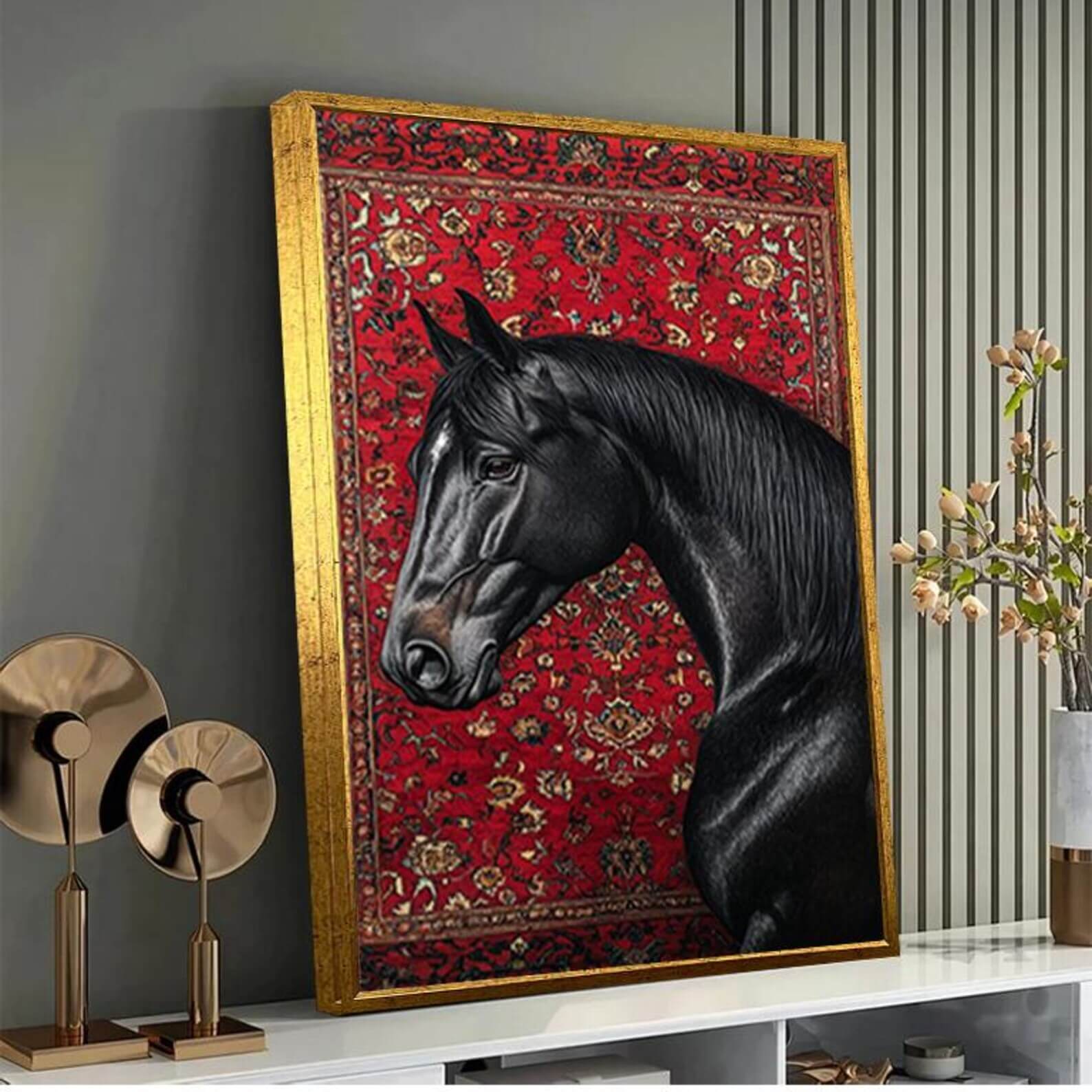 لوحة جدارية طباعة فنية بشكل حصان🪄