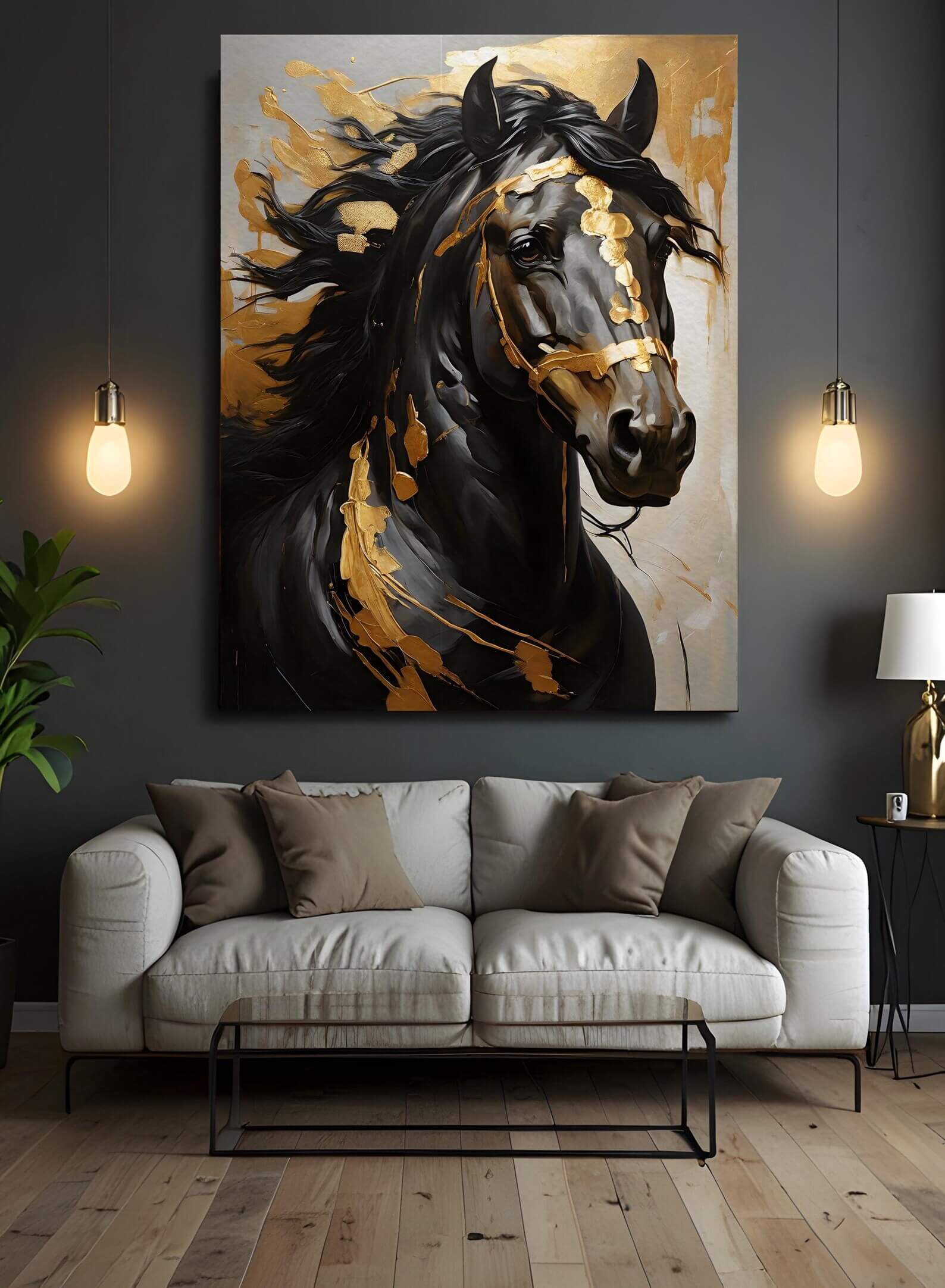 لوحة جدارية خيل واقعي بتقنية زخرفية
